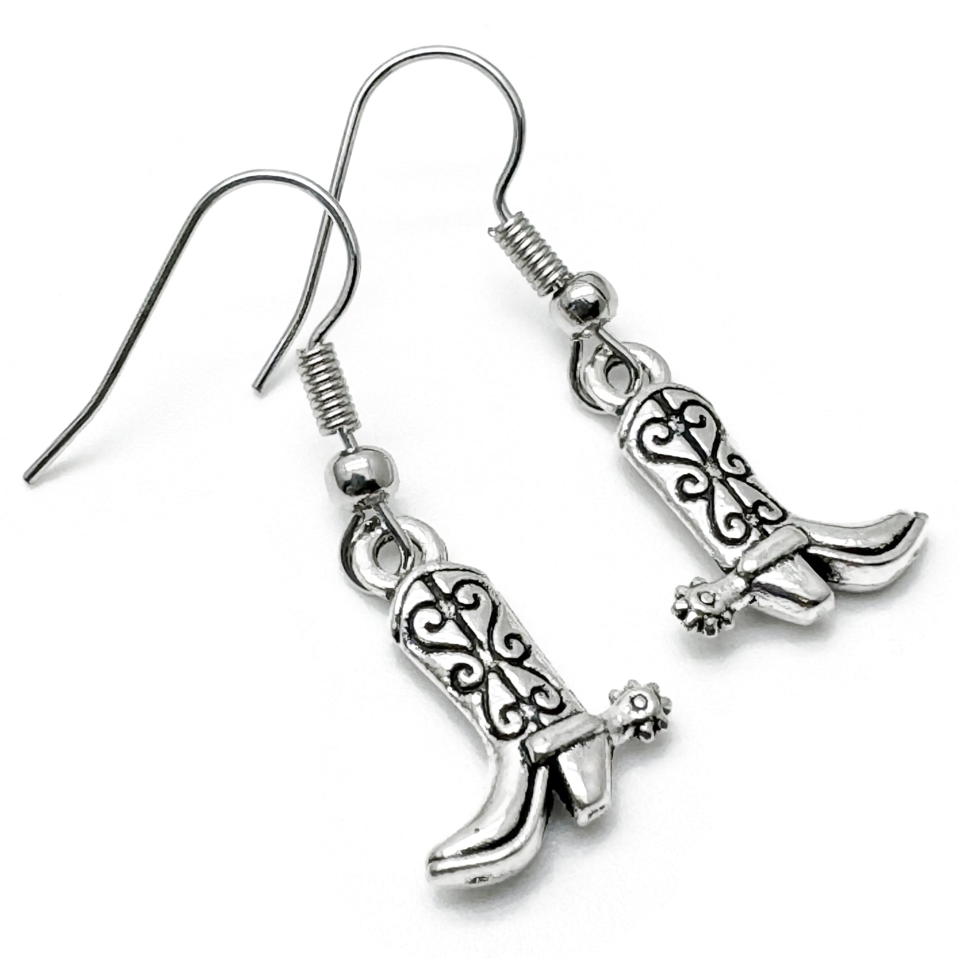 Cowboy Boot Charm Earrings, Tibetan Silver Tone Western Charms