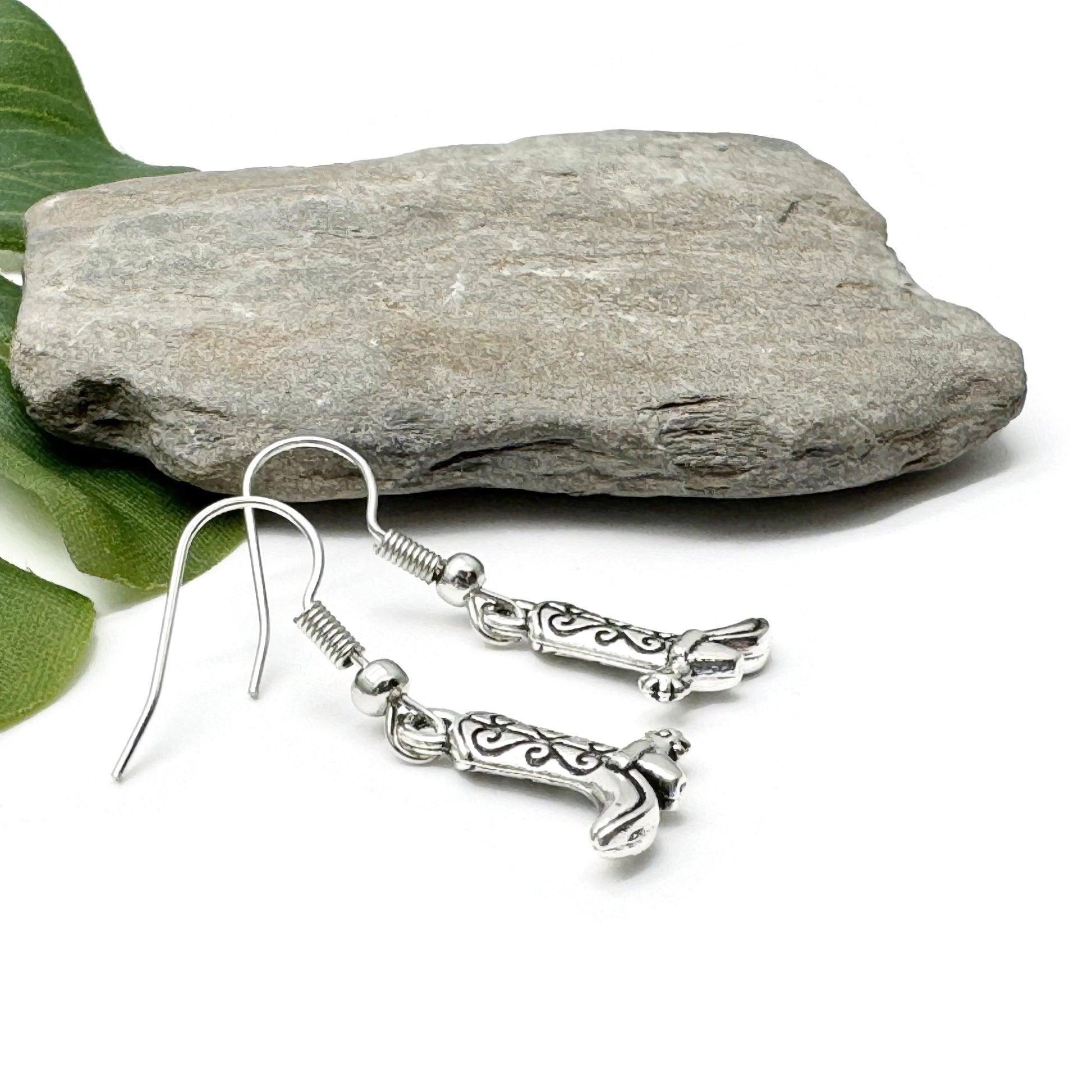 - Slim Tibetan silver 3D cowboy boot charms on nickel free antique silver tone hooks.