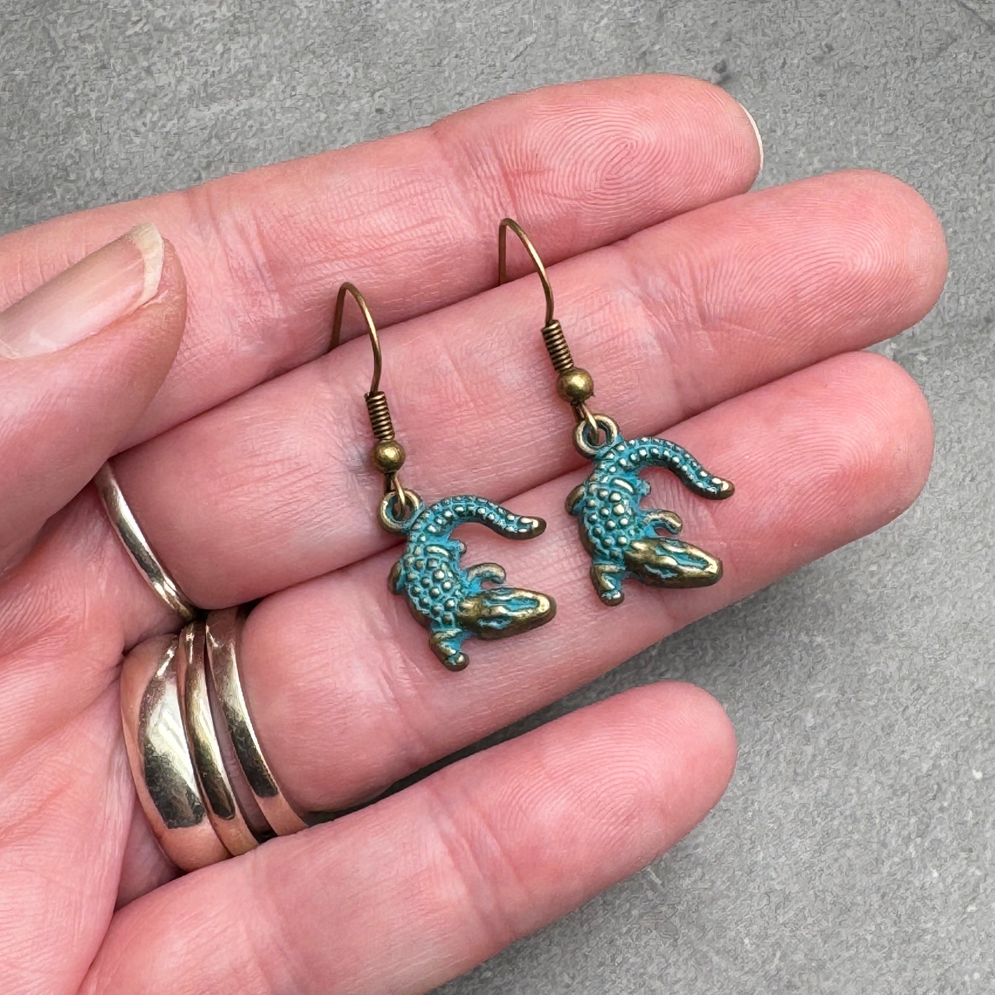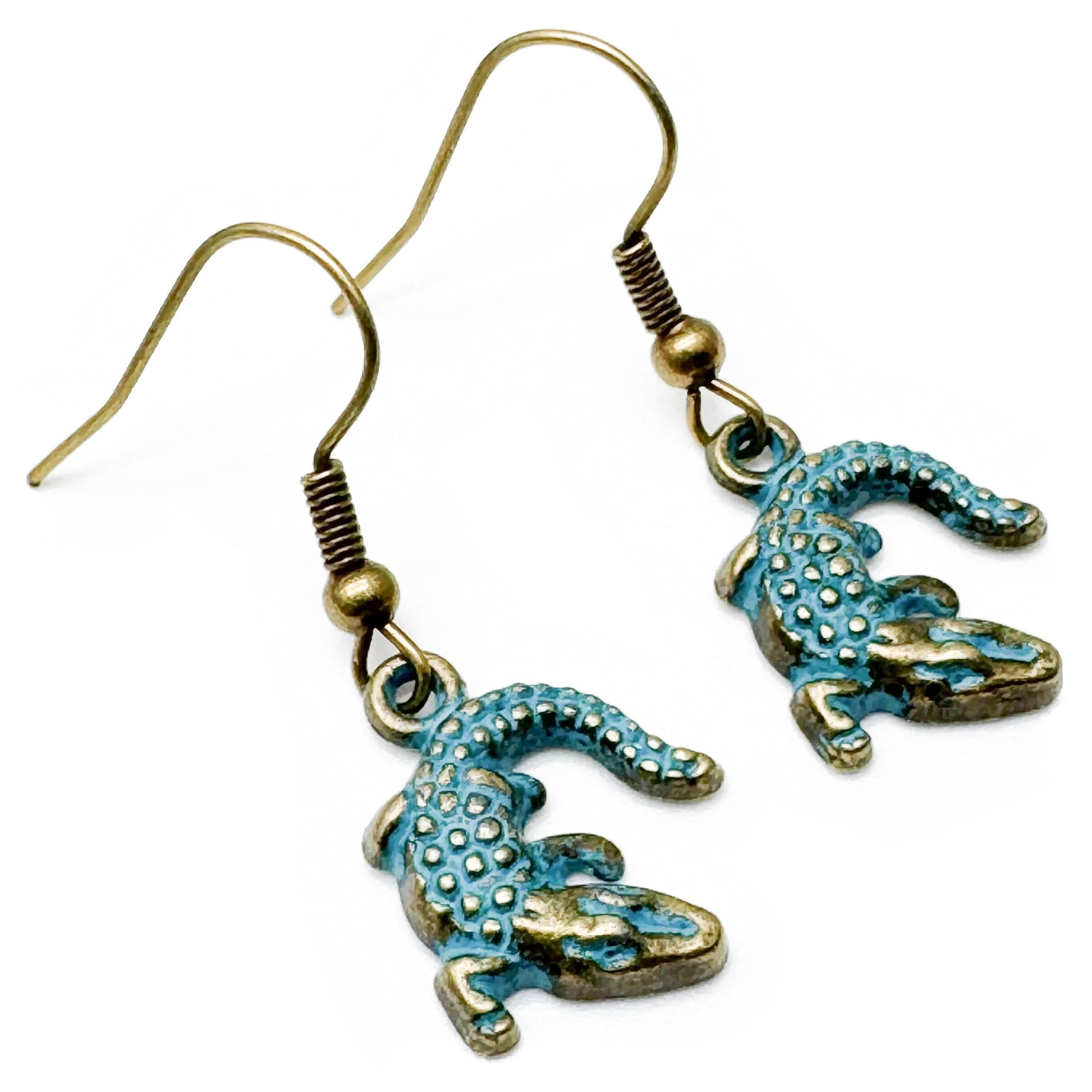 Crocodile Charm Earrings, Antique Bronze Tone Metal Charms