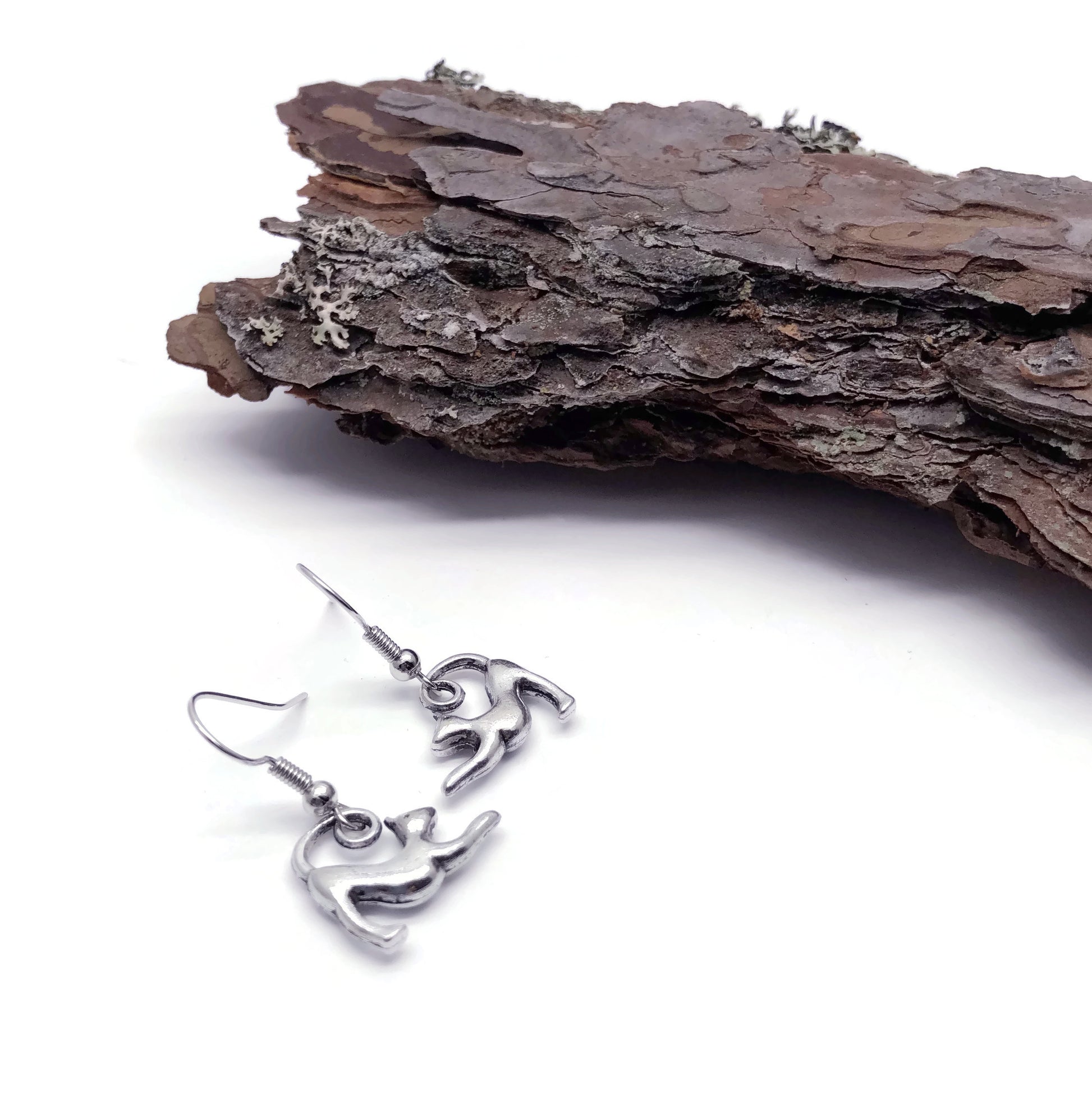 Curly Tail Cat Earrings, Cute Silver Plated Charms