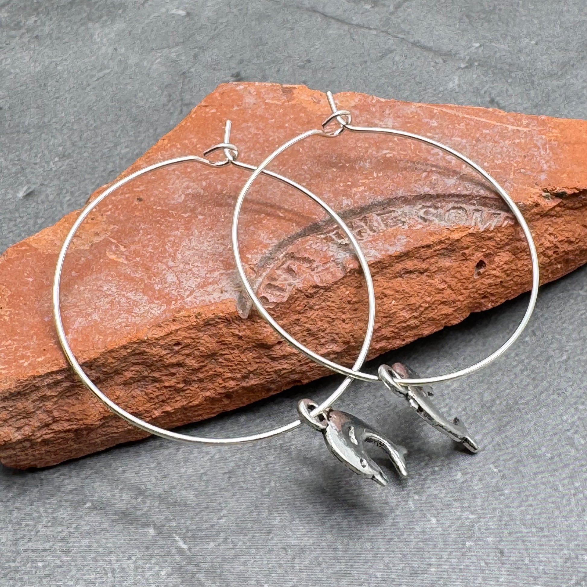 Dolphin Charm Silver Plated Hoop Earrings : 35mm Diameter