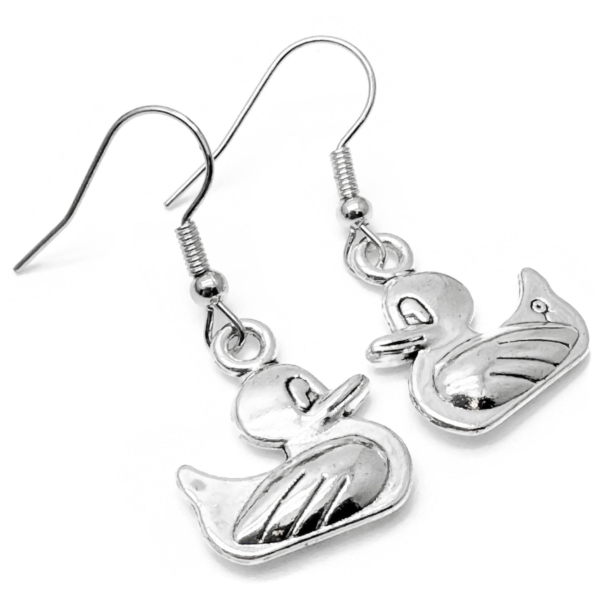 These super cute charm bead earrings feature Tibetan silver 3D duck charms, mounted on nickel free silver tone hooks. Gorgeous and fun look that gets people talking!