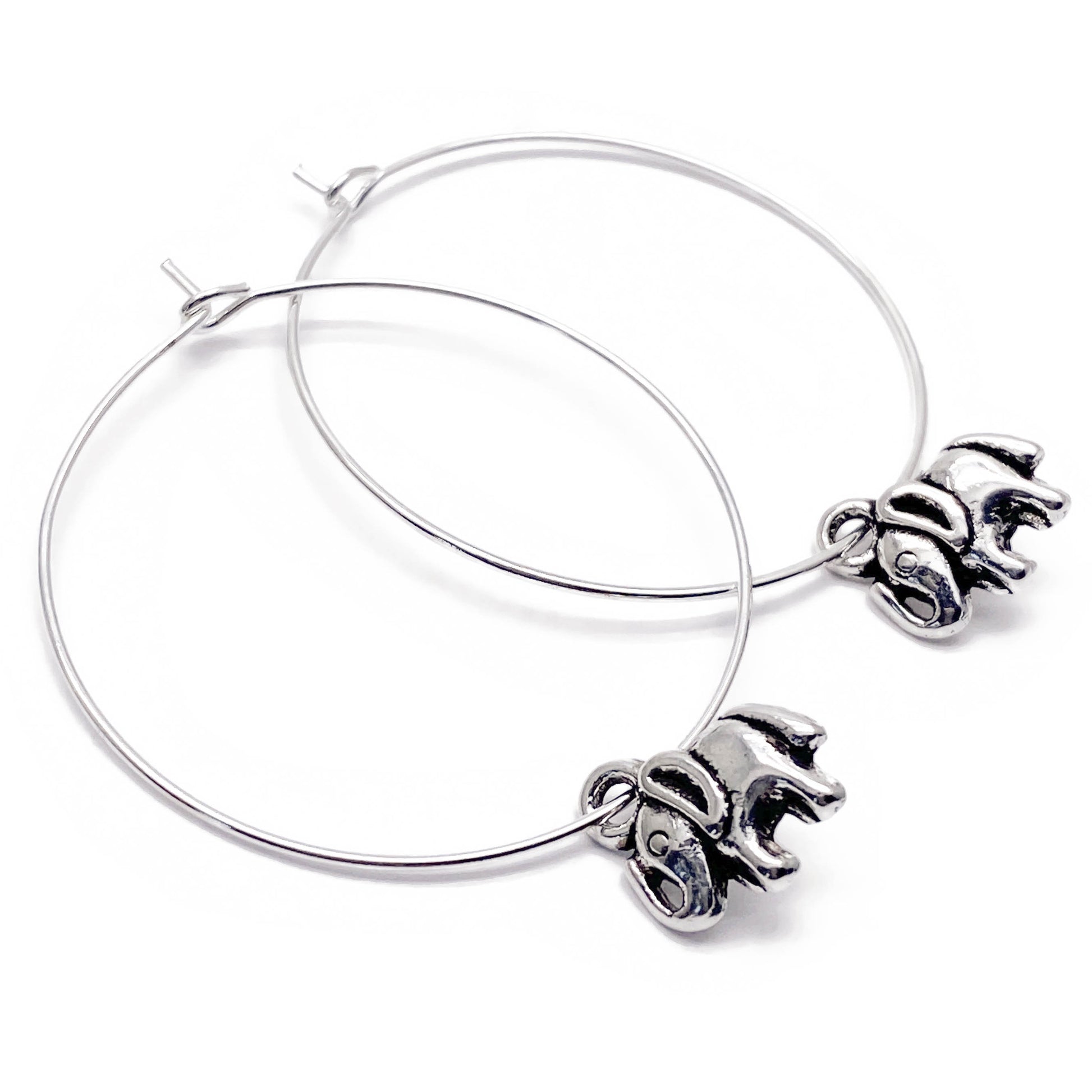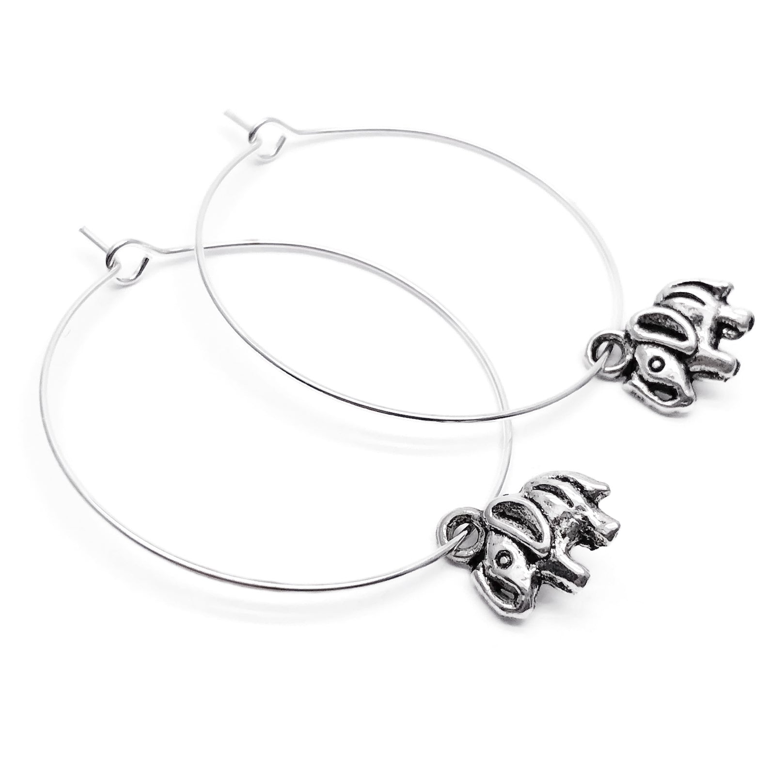 Elephant Charm Silver Plated Hoop Earrings : 35mm Diameter