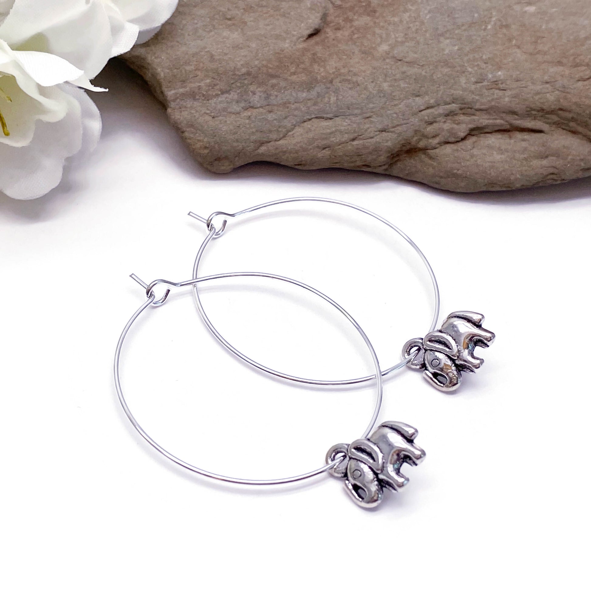 Pretty hoops earrings for everyday wear, with cute little elephant charm beads.