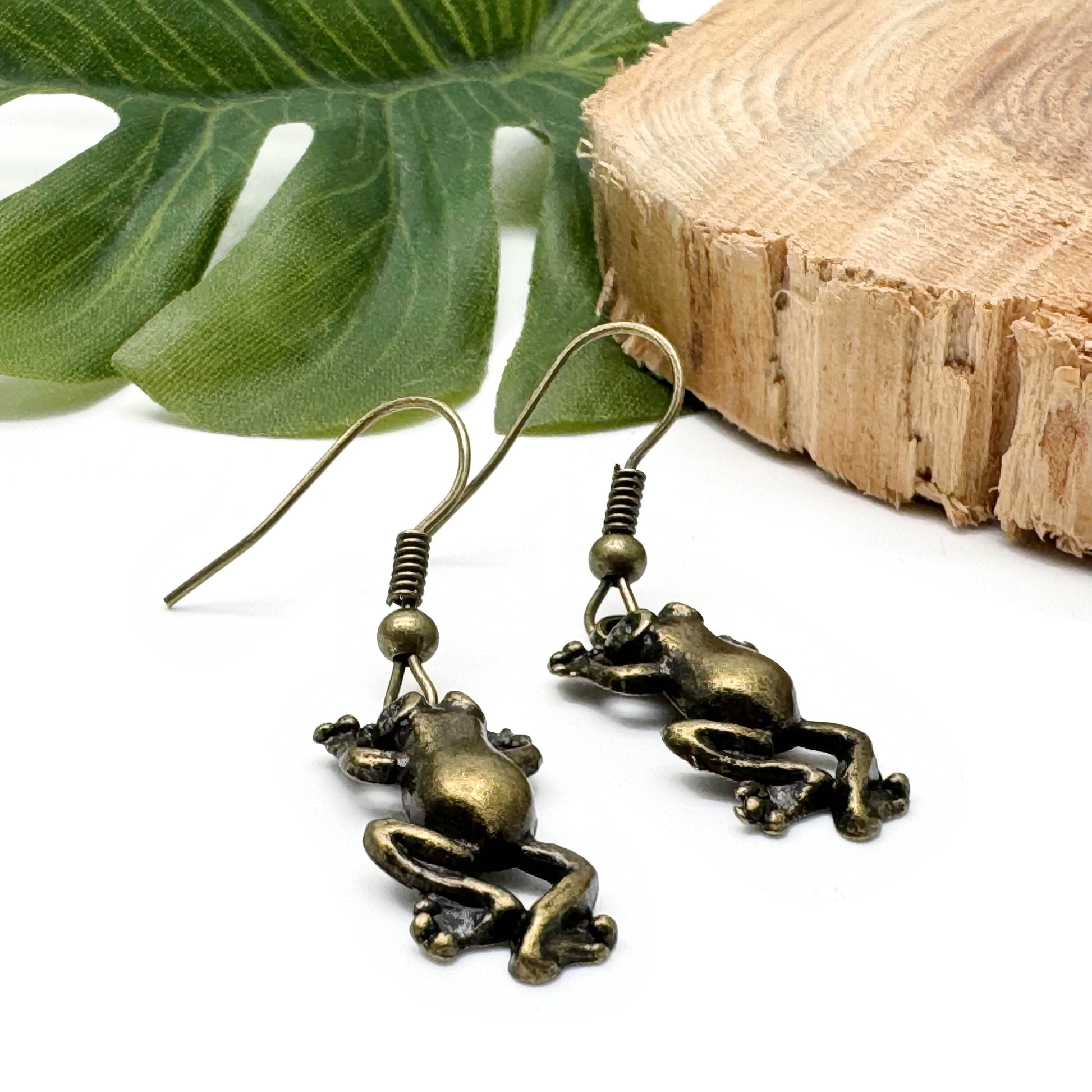 Gorgeous little frog charm beads in antique bronze tone metal. The earrings look great on and are perfect for your favourite froggy lover!