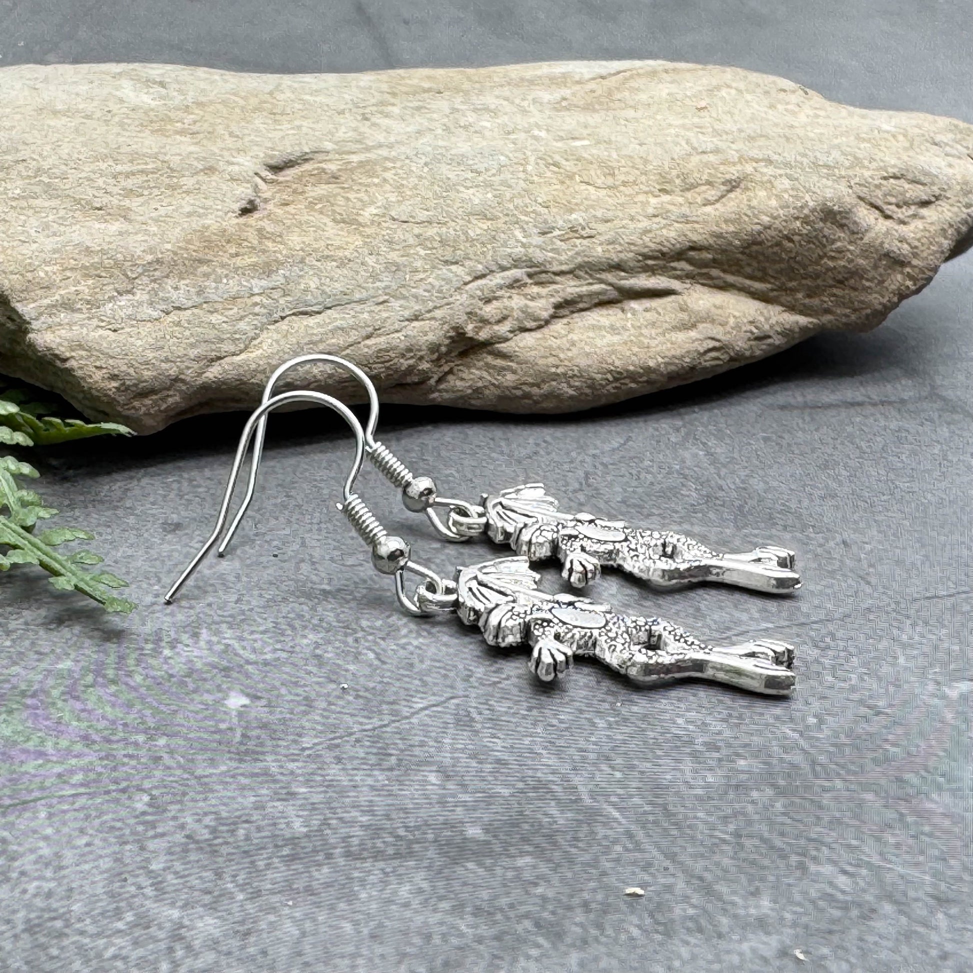 Super cute and lightweight earrings, with fun and quirky dangly Tibetan silver frog charms holding a little umbrella.