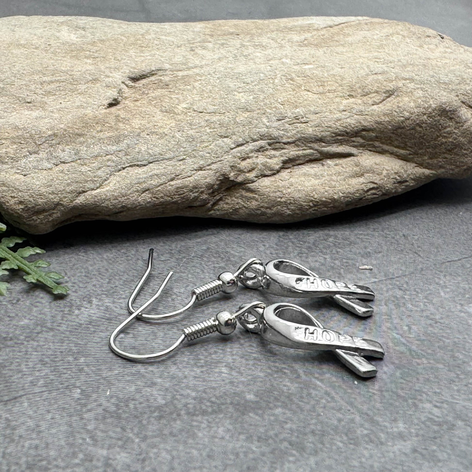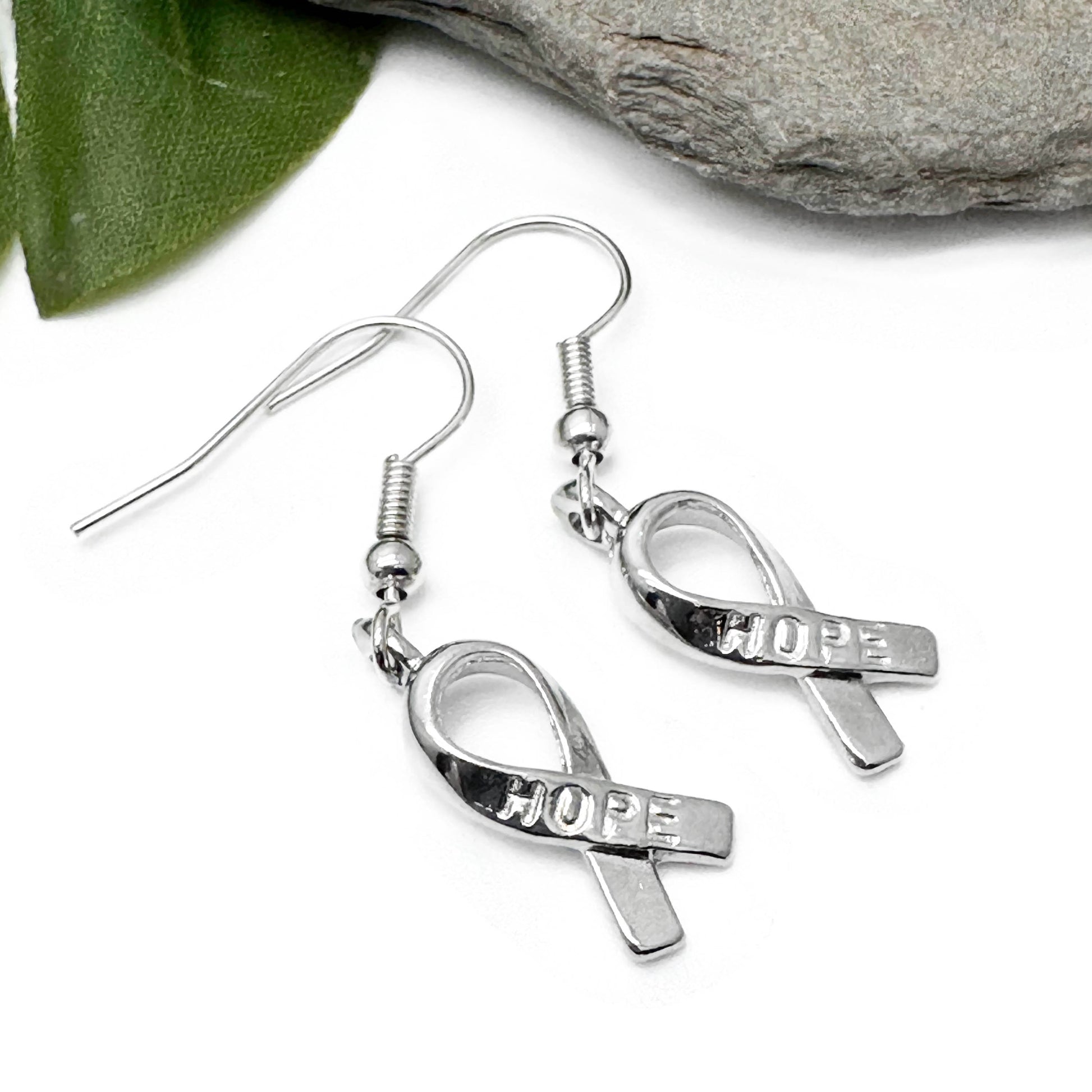 Hope Ribbon Earrings, Silver Plated Awareness Charms
