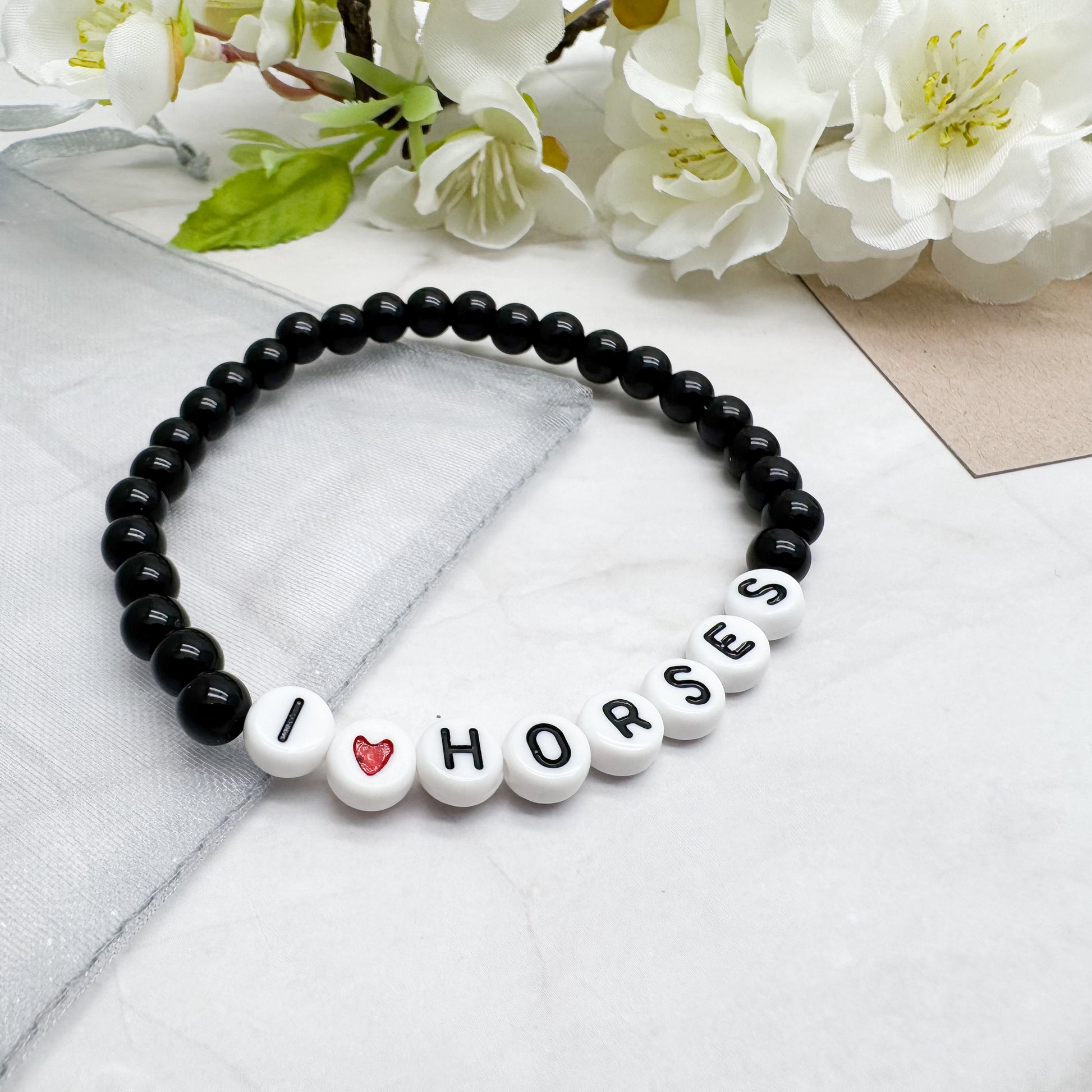 I LOVE HORSES Message Bracelet - Acrylic Letter Beads