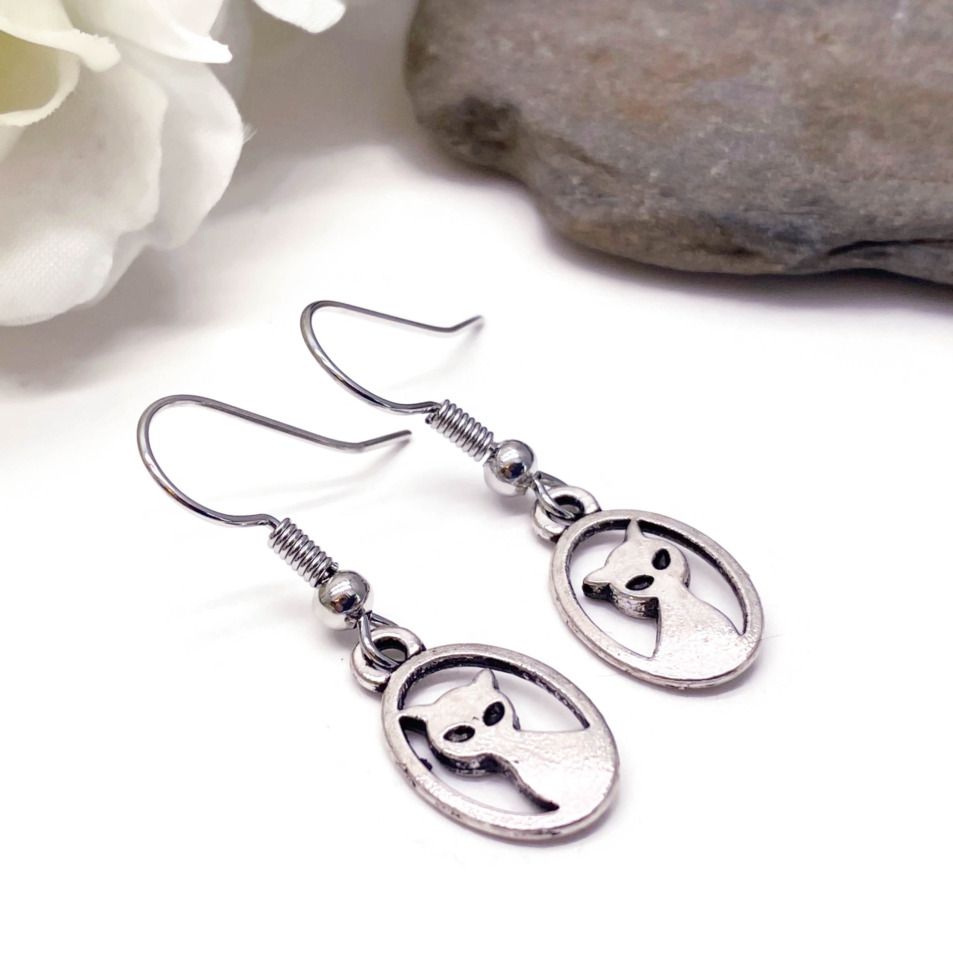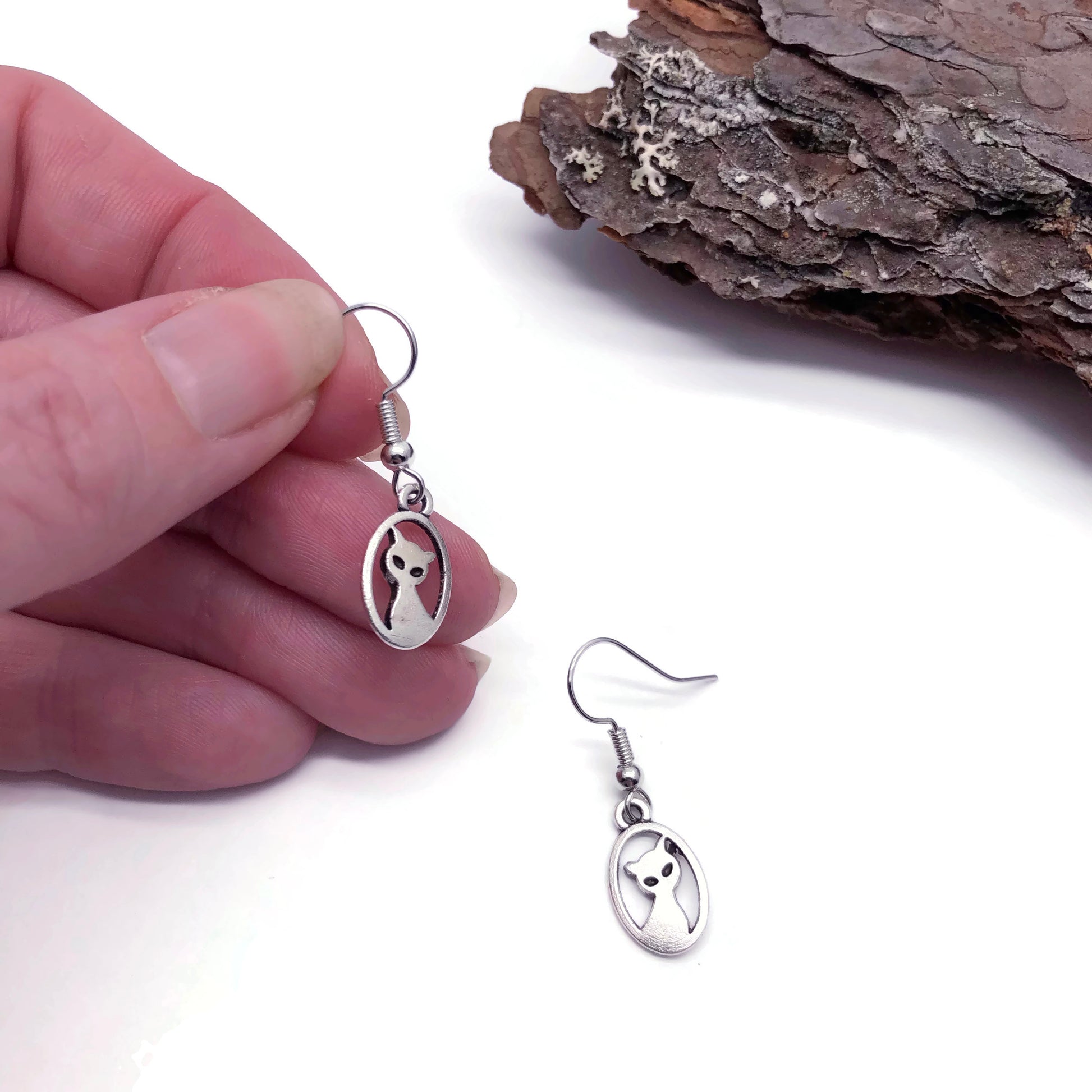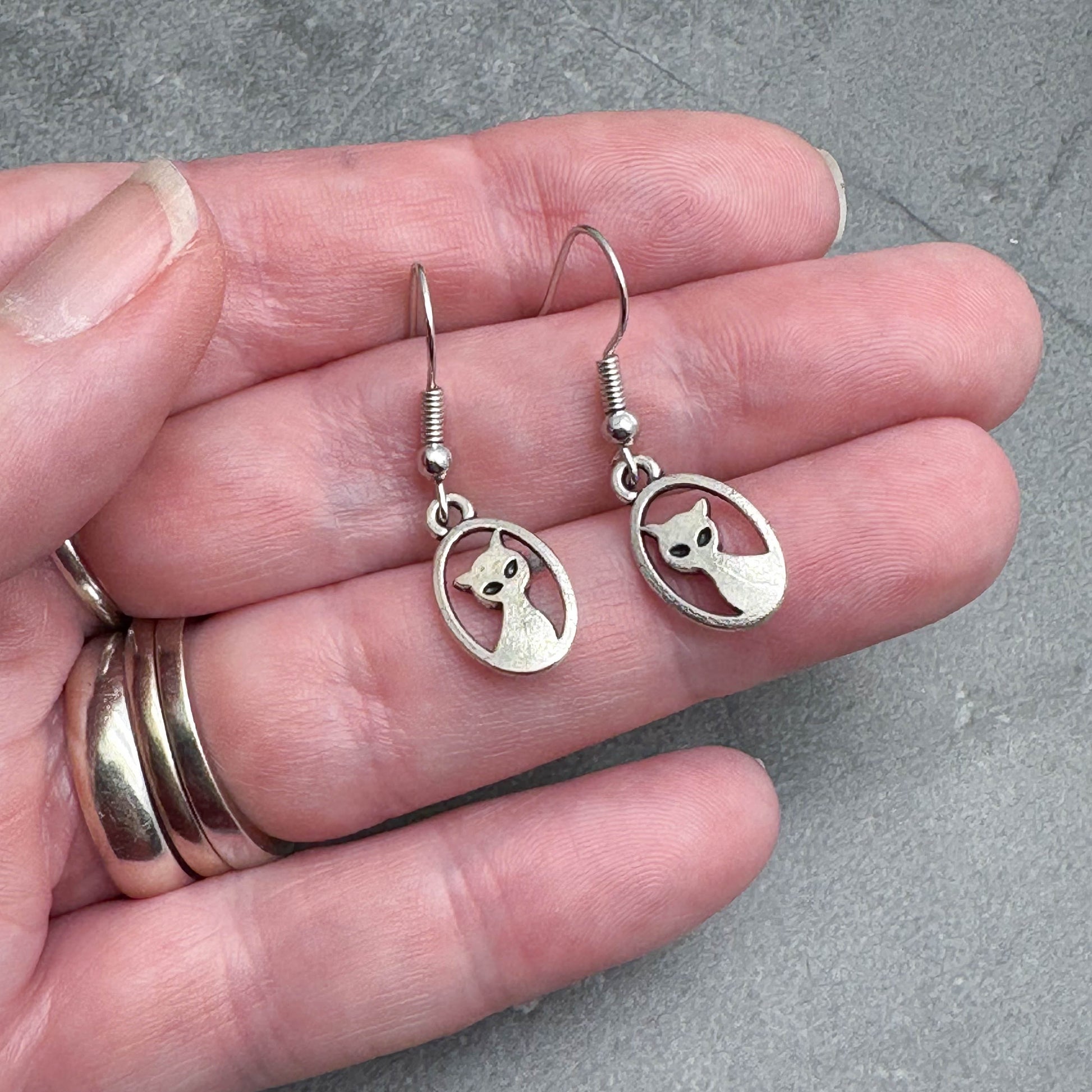 Kitty Cat Earrings, Cute Silver Plated Charms