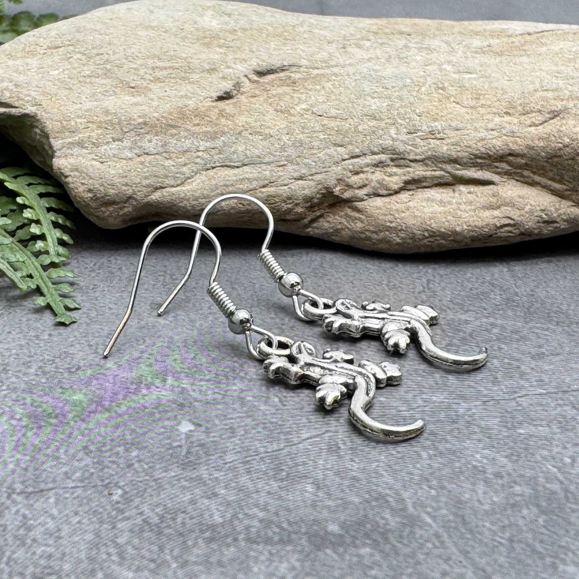 Cute little Tibetan silver lizard charms on nickel free antique silver tone hooks. Perfect for trick or treating, or to wear with a fun outfit for the fancy dress party. Or just because you love lizards...