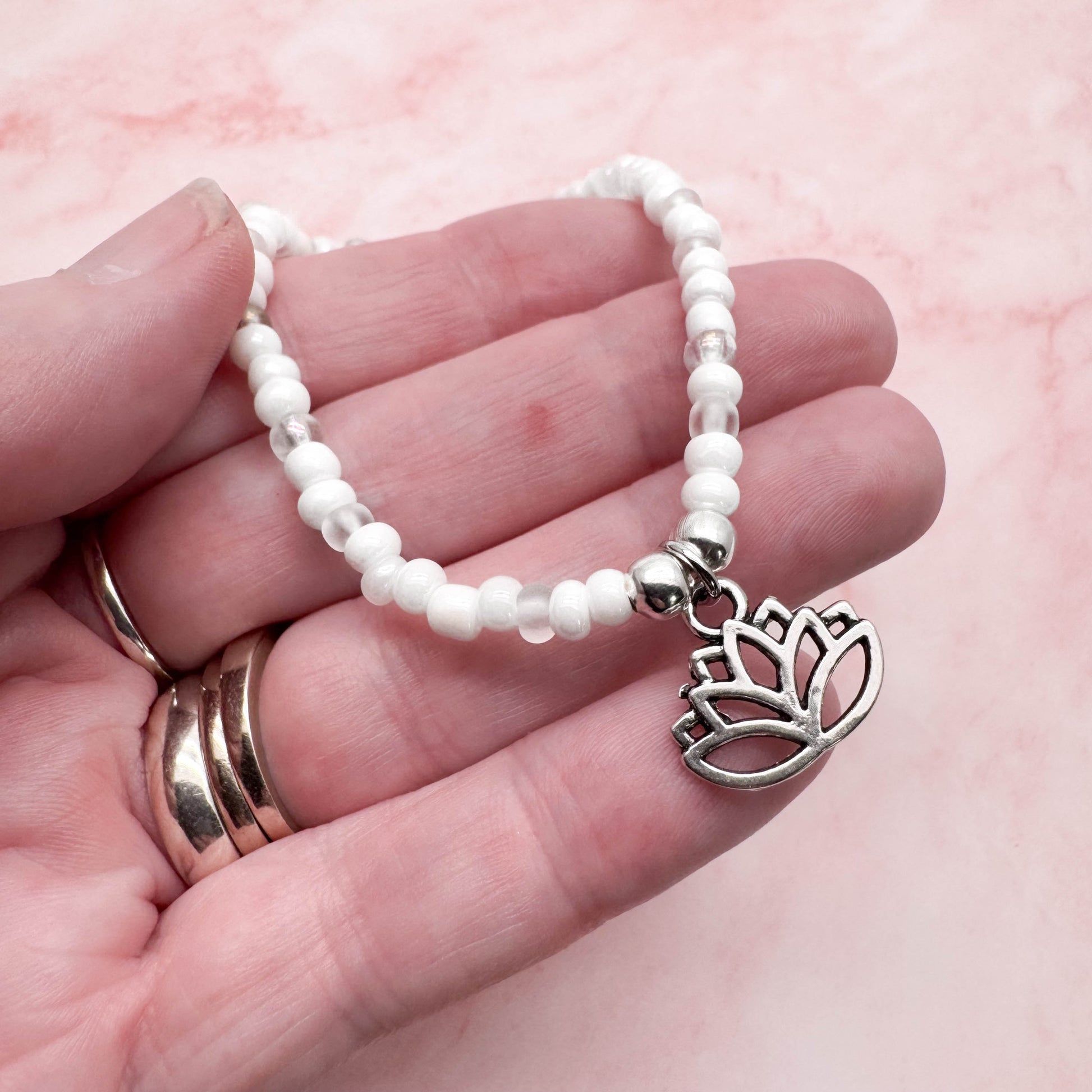Lotus Charm Seed Bead Anklet - Colour Choice