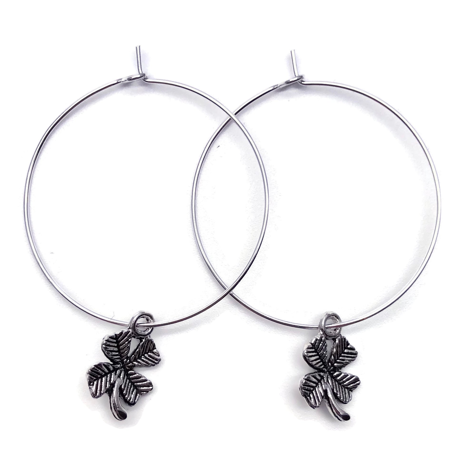 Lucky Clover Charm Silver Plated Hoops : 35mm Diameter
