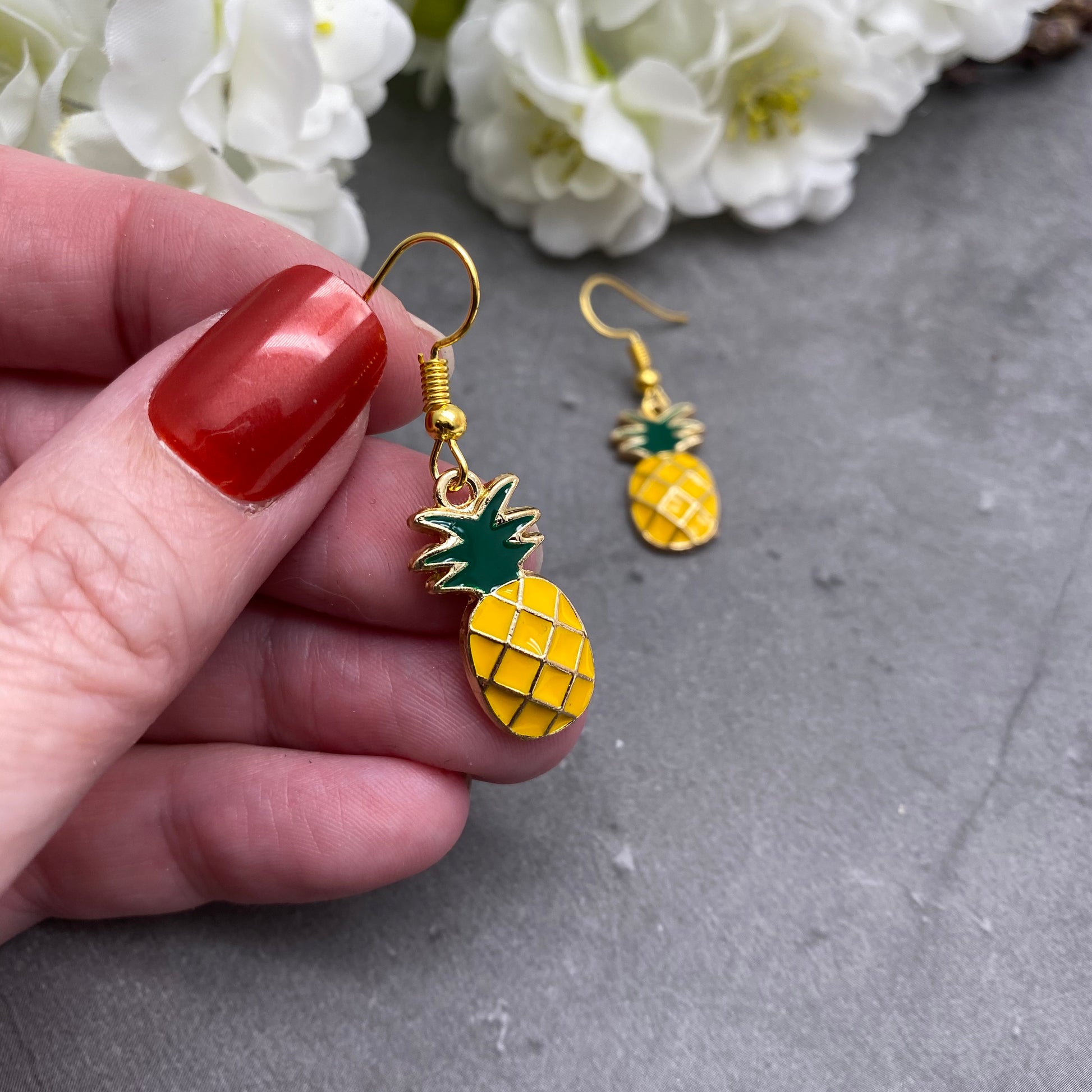 Pineapple Earrings, Gold Plated Yellow Enamel Charms