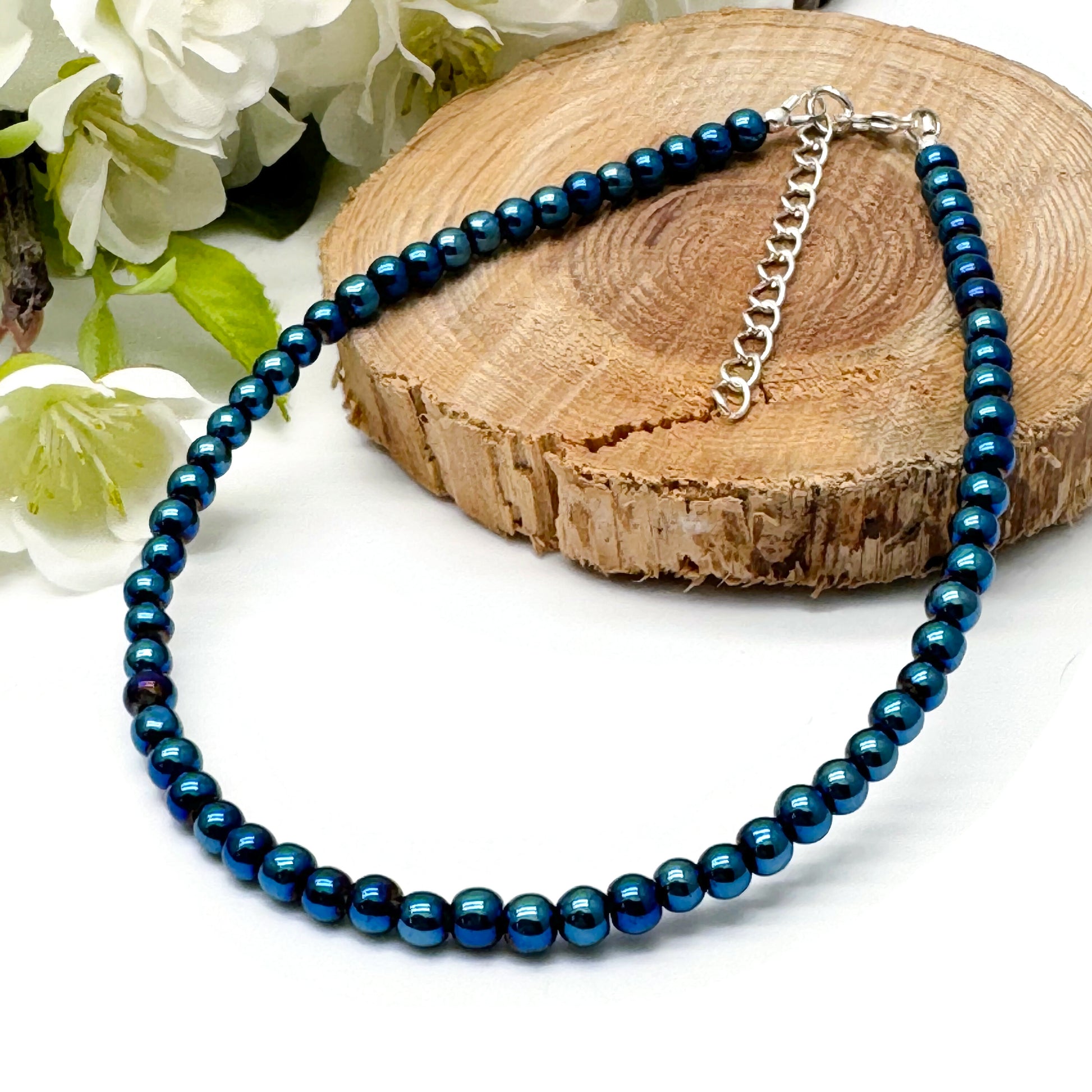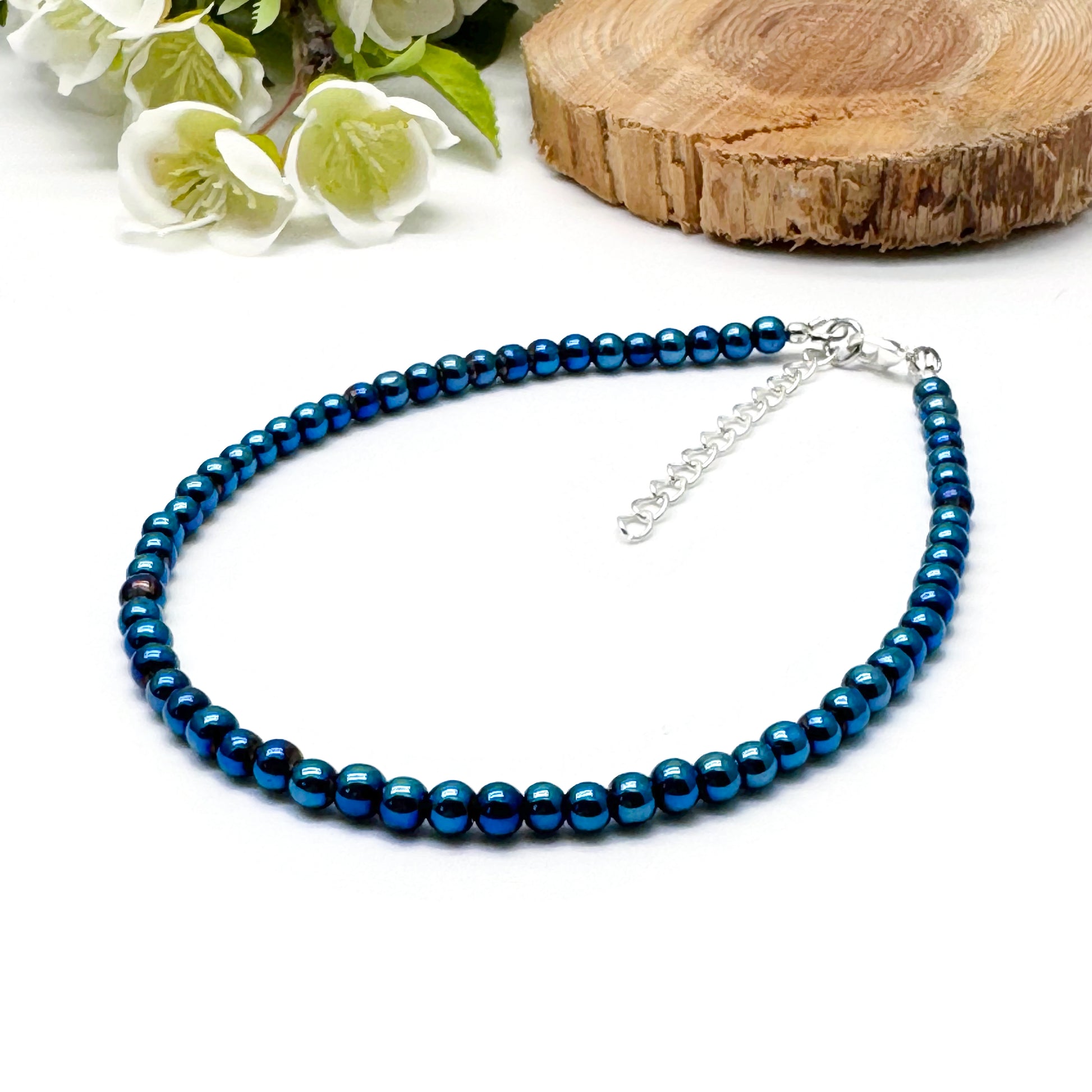 Plus Size Anklet with 4mm AB Dark Blue Glass Beads, Adjustable