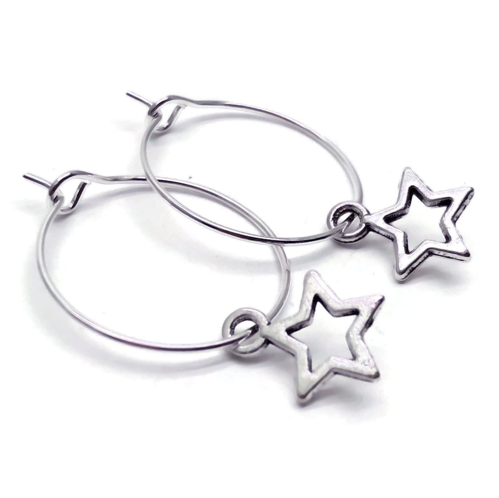 Each charm hoop earring pair offers a unique look: angel wings earrings symbolise protection and freedom; star charm earrings add a touch of sparkle and inspiration; heart charm hoops express love and warmth. This variety allows you to personalise your accessories easily.