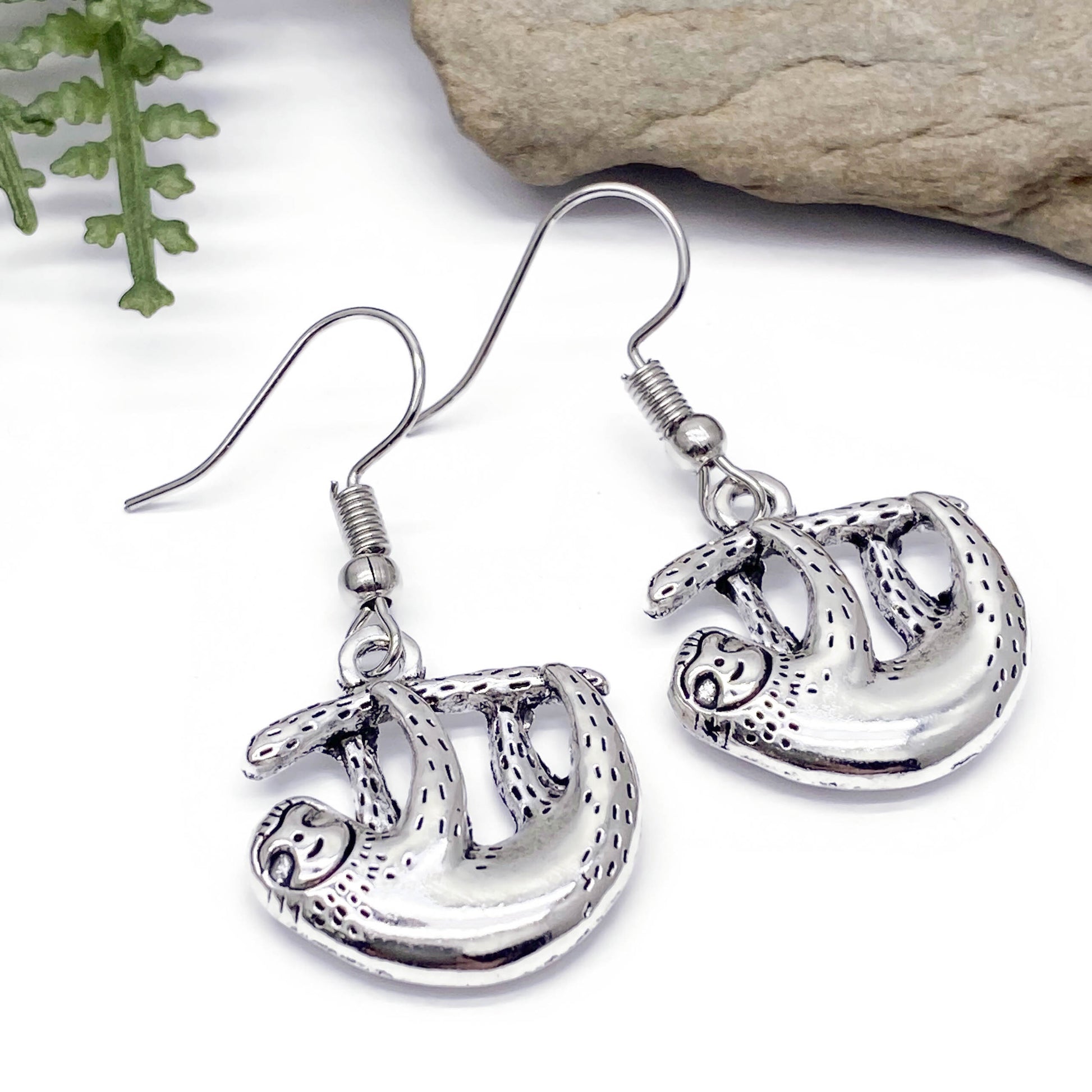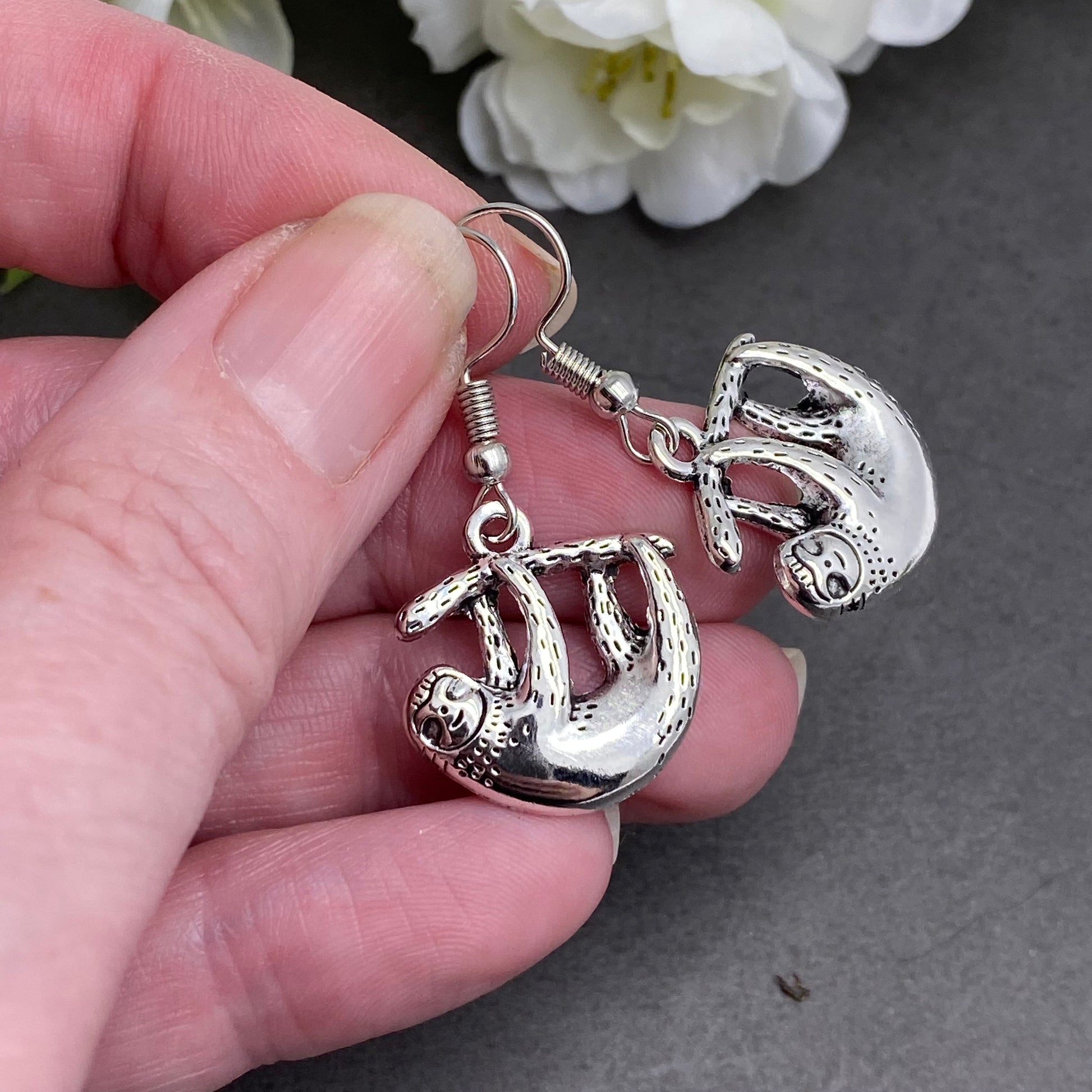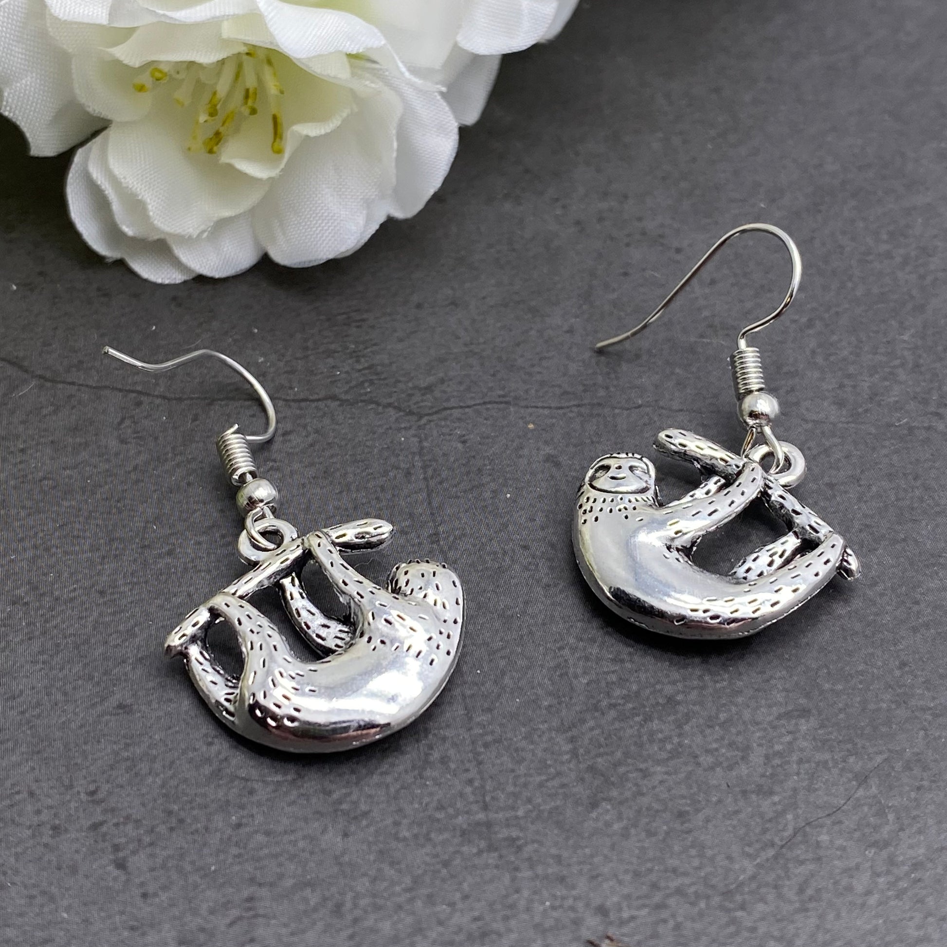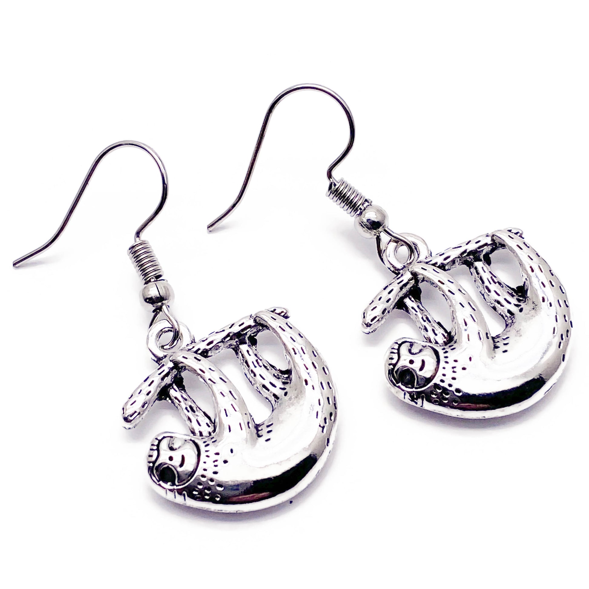 Sloth Charm Earrings, Tibetan Silver Plated Charms