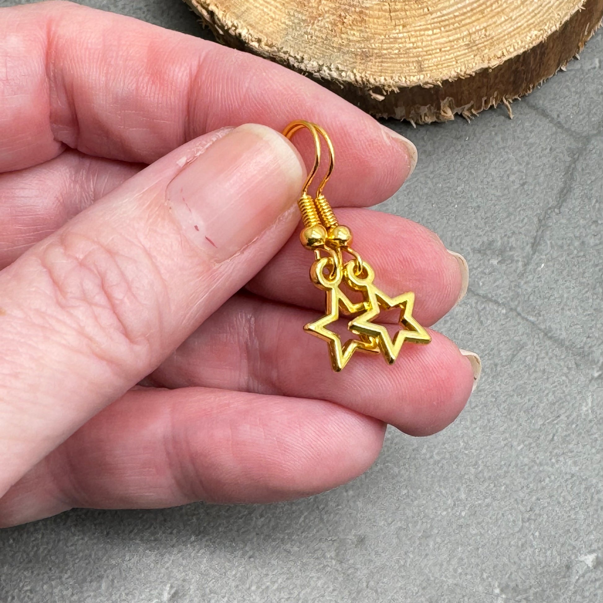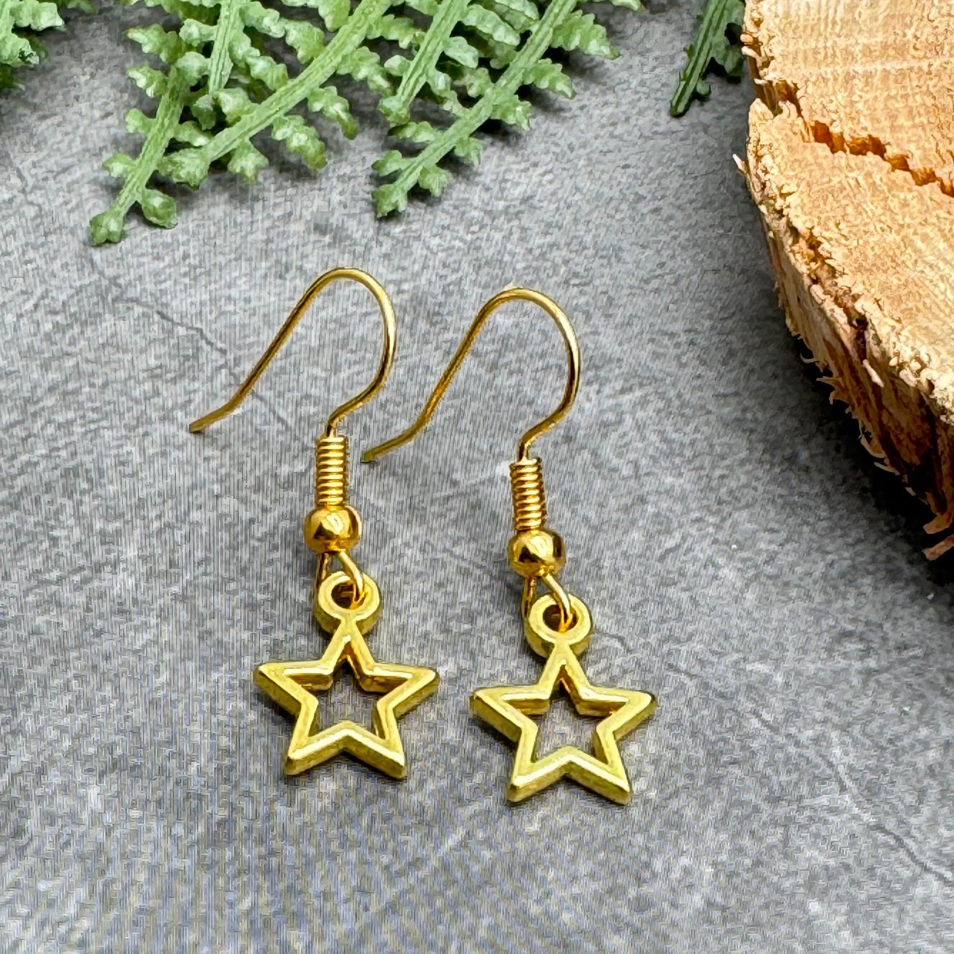 Small charm bead earrings with gold plated hollow star charms.