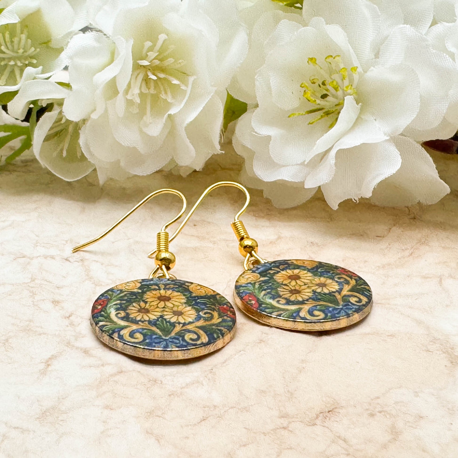 Pretty earrings in a vintage style sunflower pattern design, a fun addition to your favourite outfit!