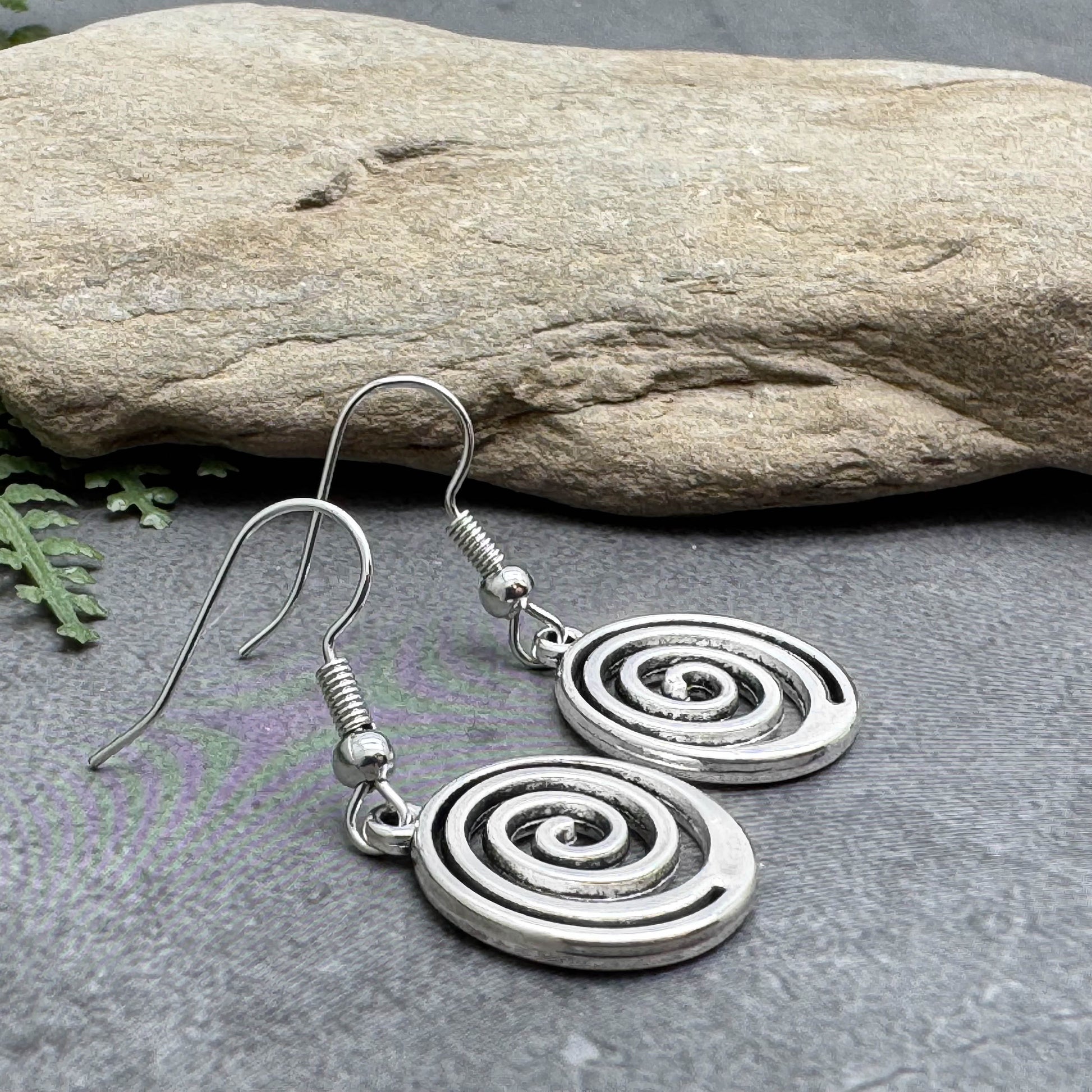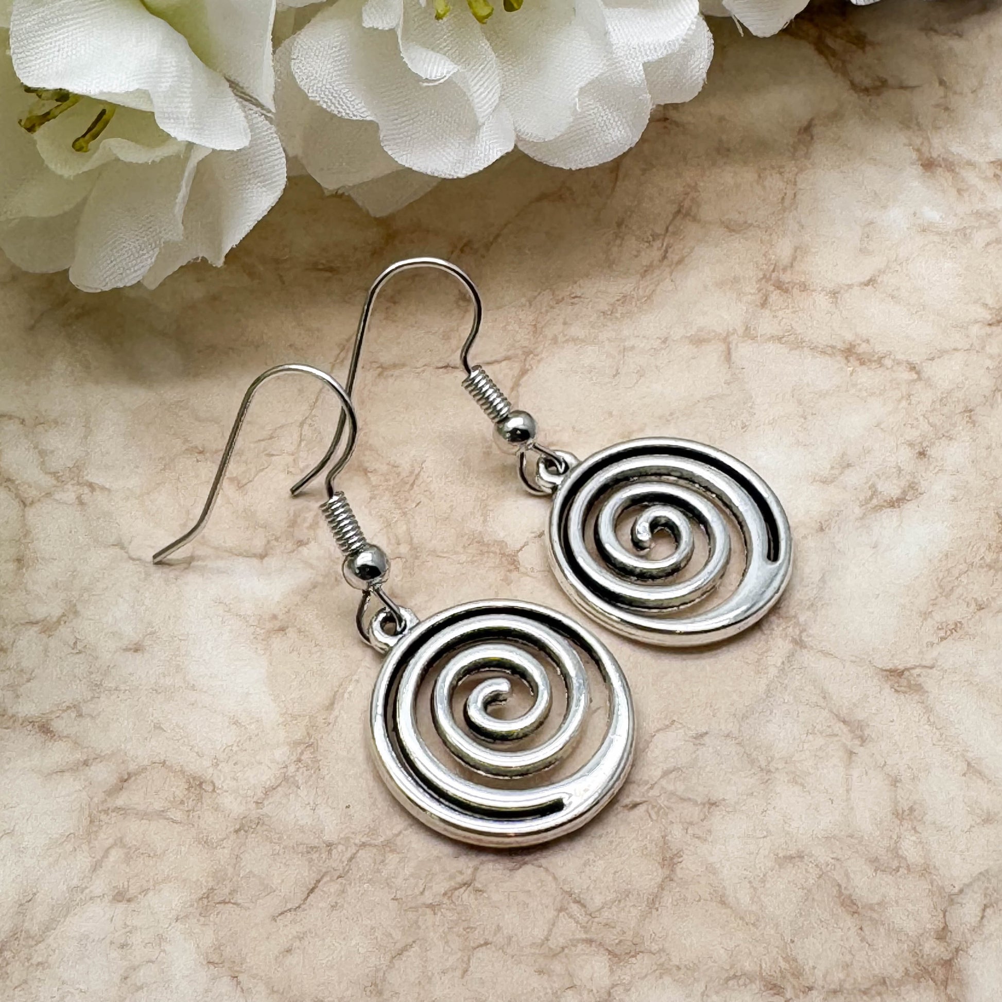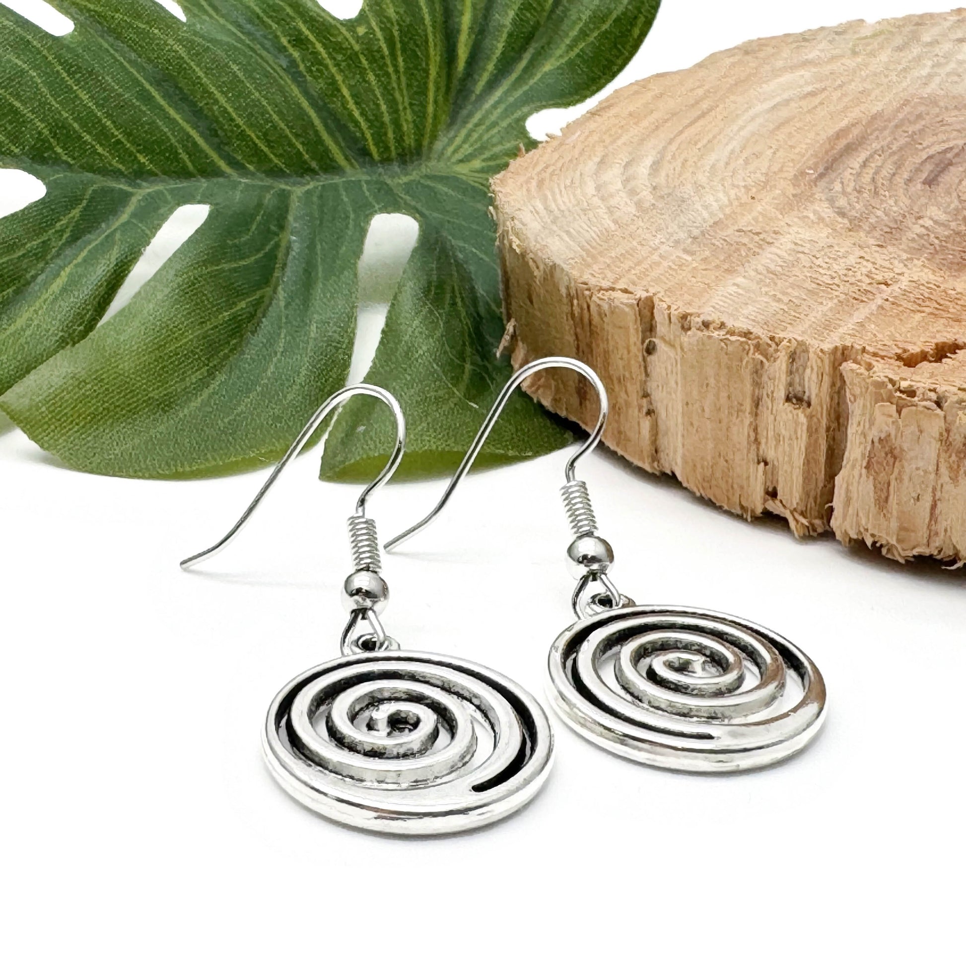Swirly Spiral Earrings, Cute Round Tibetan Silver Tone Charms