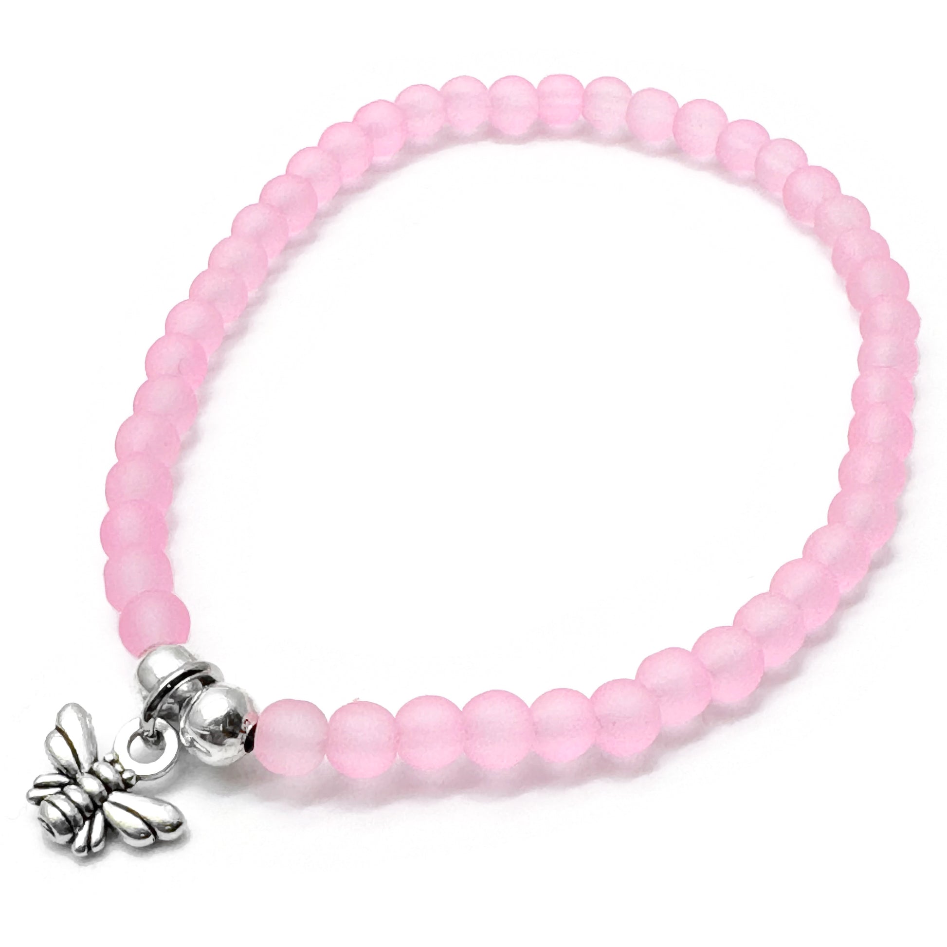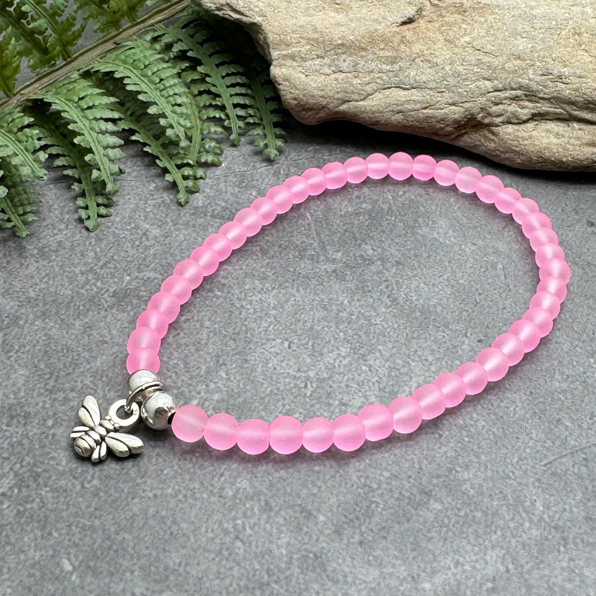 Tiny Bee Charm Frosted Bead Bracelet - Colour Choice