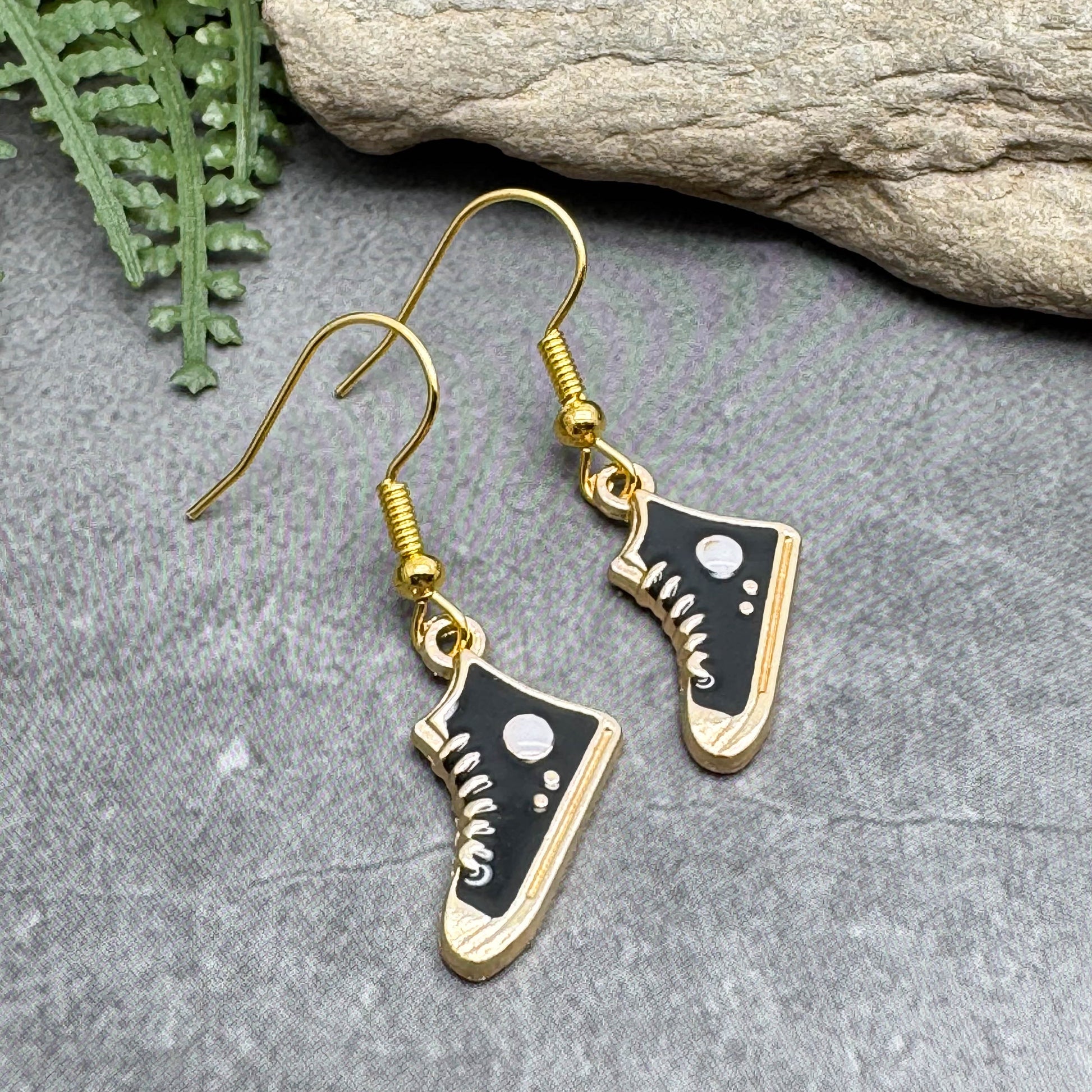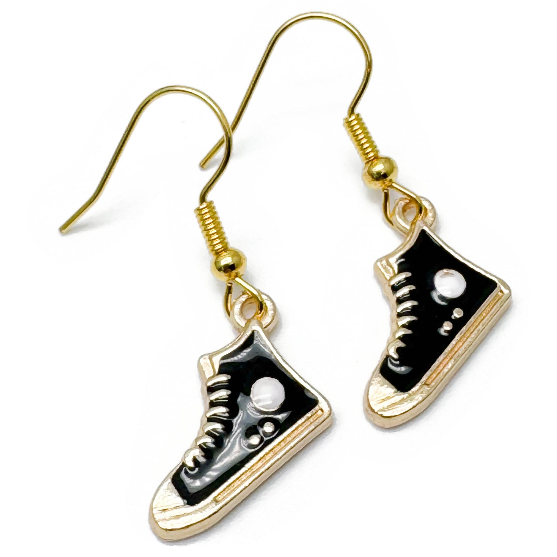 Trainer Charm Earrings, Black and White Enamel Shoe Charm Beads